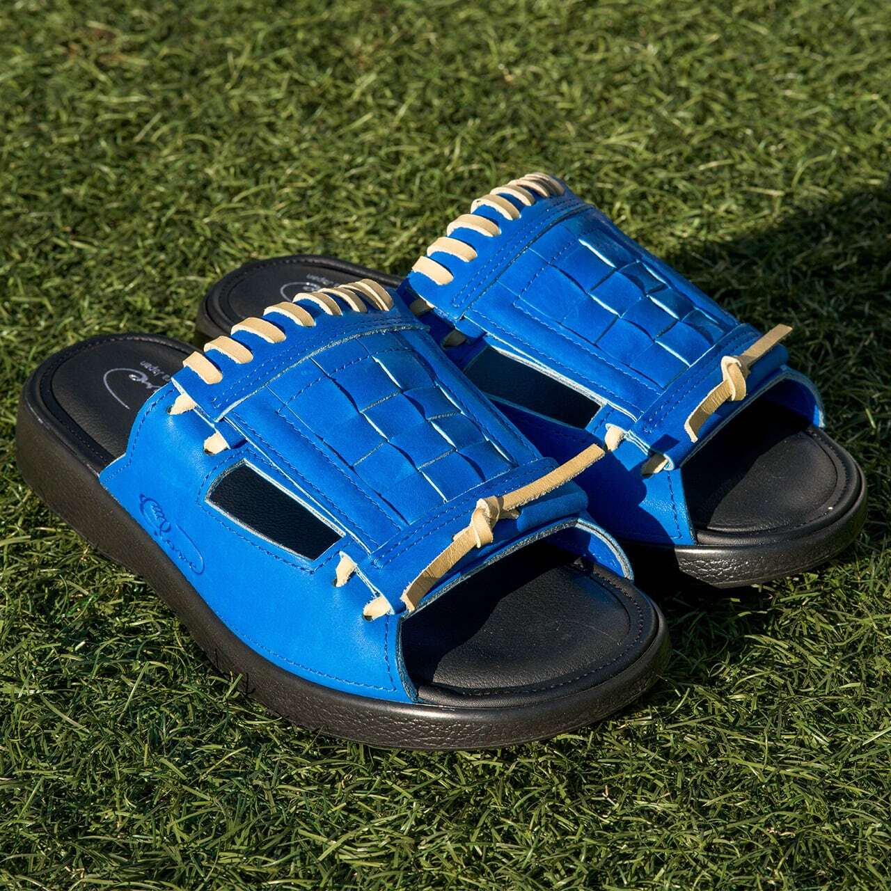- プロ野球選手御用達の「ミズノ製グローブ」とコラボしたクラフト感漂う天然革のサンダル。